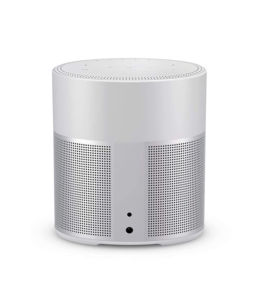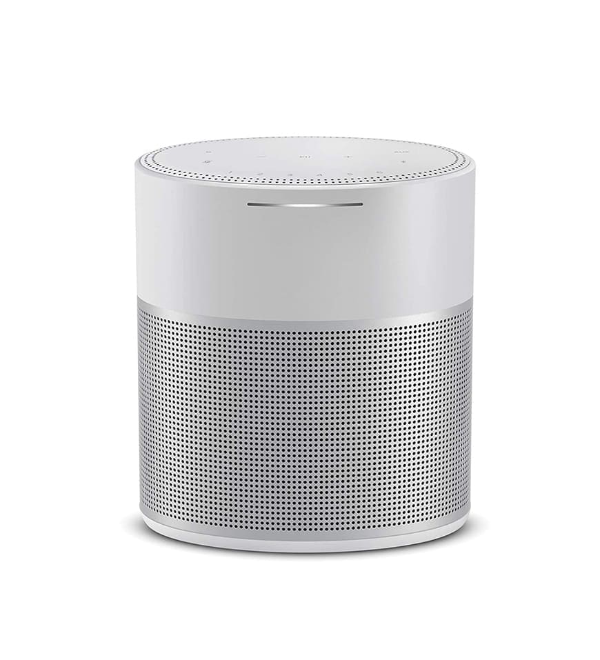 The Bose Home Speaker 300 typically features a sleek and modern design with a small footprint, making it suitable for various rooms in your home. It often comes in different color options, including Silver. The build quality is usually good, in line with Bose\’s reputation for audio products.